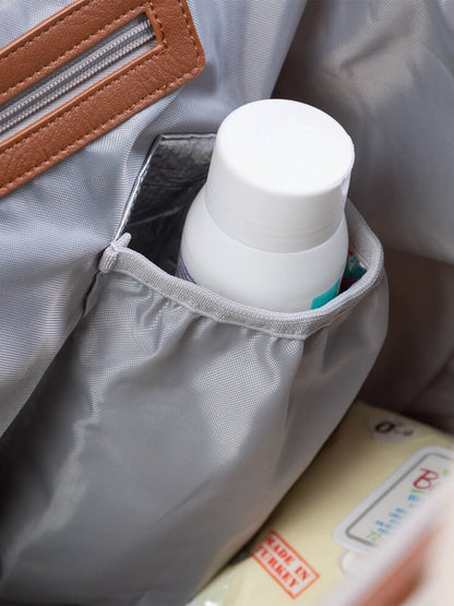 Dlaczego Mommy Bag Signature jest taka wyjątkowa? Skórzane detale, wodoodporny materiał, wygodny sposób otwierania ułatwiający szukanie potrzebnych rzeczy, mata do przewijania w zestawie, a także kieszonka na butelkę z izolacją temperatury.