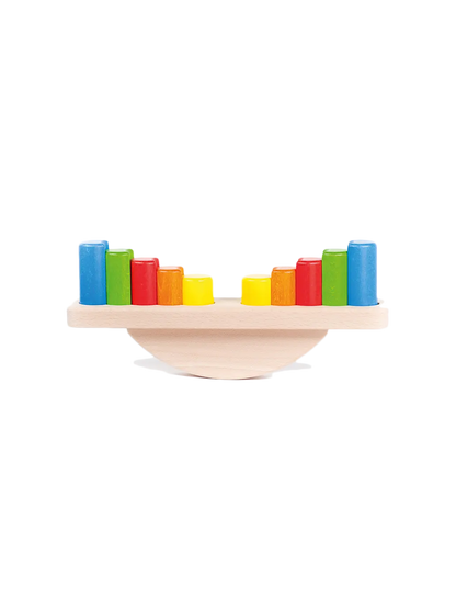 Balansujący, drewniany sorter, który jednocześnie jest równoważnią.