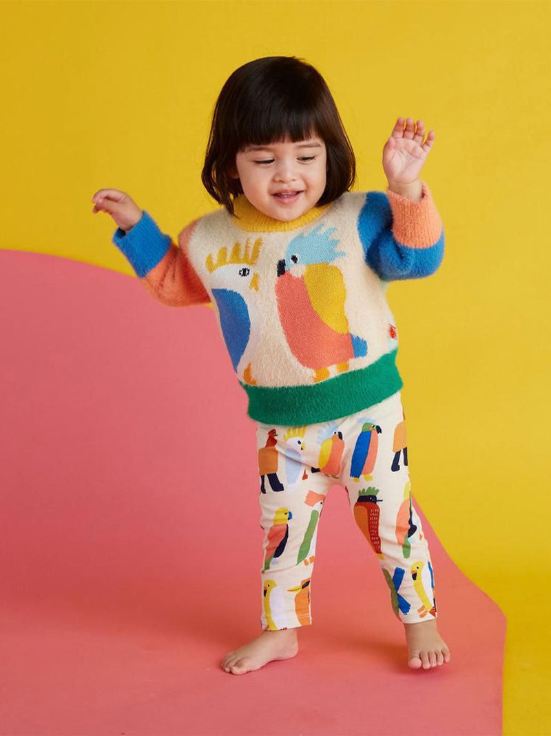 Puszysty, dzianinowy sweter australijskiej marki Halcyon Nights sprawi, że Twoje dziecko będzie czuło się przytulnie i wesoło, dzięki pięknym kolorom i ilustracjom.