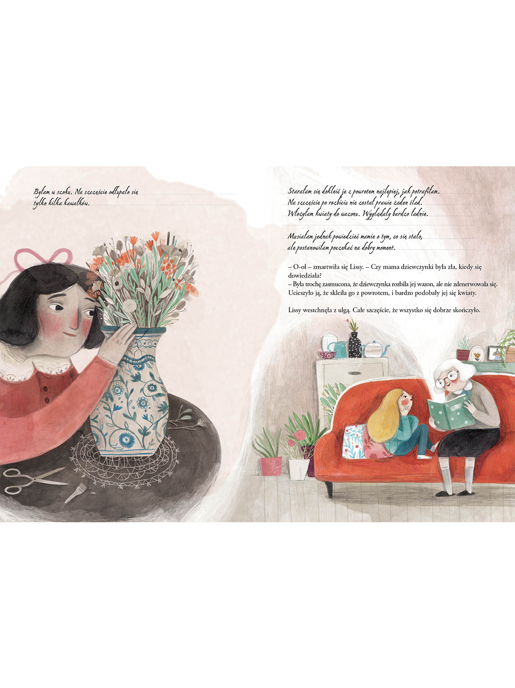 Kilkuletnia Lissy z uwagą i zaaferowaniem słucha wspaniałych przygód pewnej dziewczynki, które na szczęście zawsze dobrze się kończą.