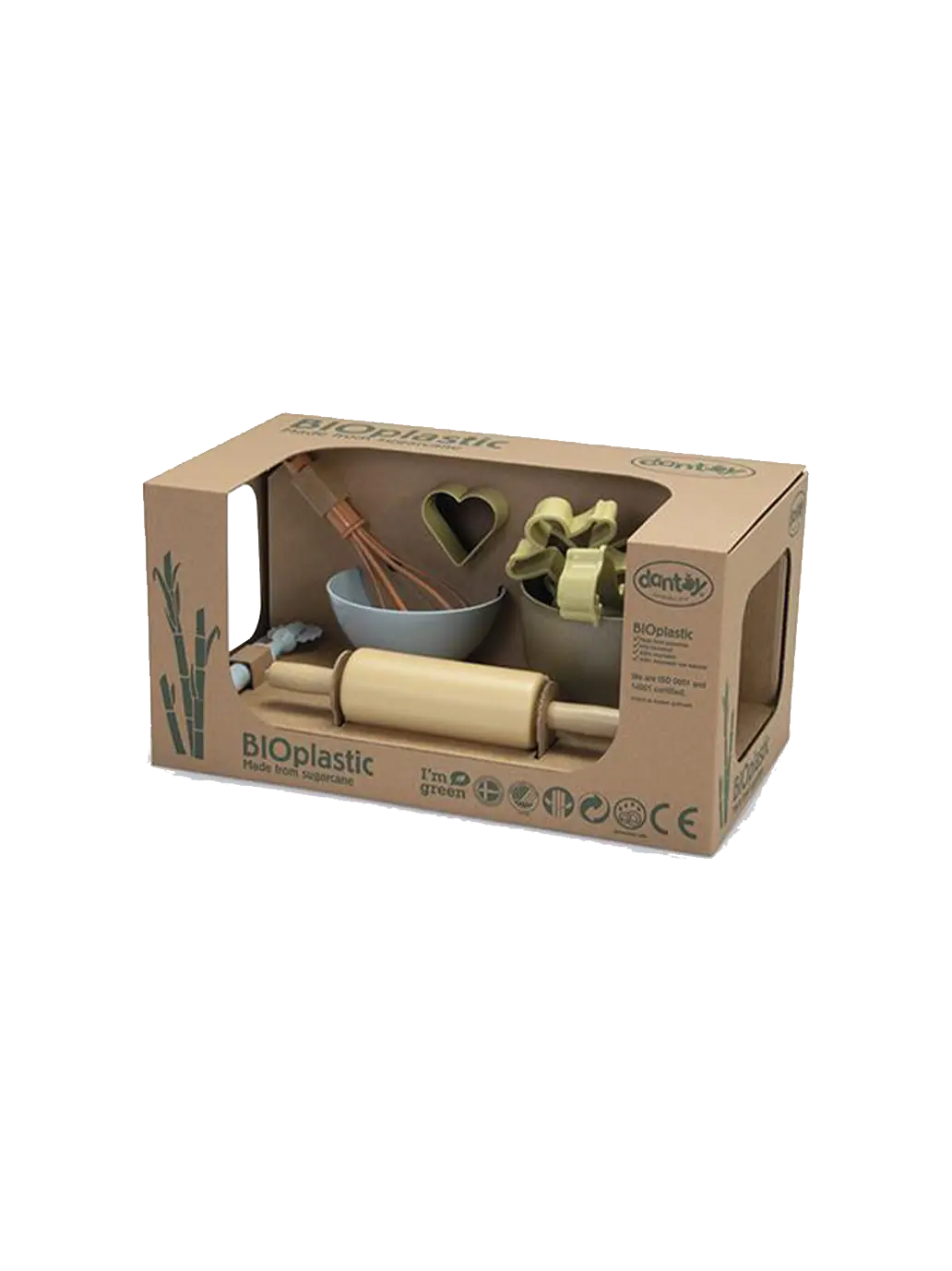 Zestaw przyborów do pieczenia BIO jest produkowany w Danii z BIOplastiku wykonanego z trzciny cukrowej, która w 100% jest zrównoważonym surowcem, dzięki czemu posiada certyfikat Nordic Swan Ecolabel. Zabawki te są przyjazne dla środowiska i nie zawierają szkodliwych chemikaliów. Nasze pudełka do zabawek z linii BIO wykonane są z tektury z recyklingu.